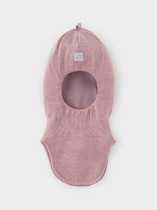 Шапка для девочки двухслойная из однотонной полушерстяной пряжи. Скругленная макушка. По нижнему краю жаккардовая нашивка.