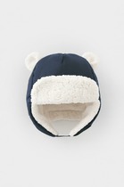 Шапка детская из однотонной мембранной ткани с декоративными ушками. Внутри искусственный утеплитель и подклад из мягкого длинноворсового флиса. Застёгивается под подбородком на липучку. Спереди отворот на липучке. На затылке эластичная резинка. Сбоку прикреплён светоотражатель.
