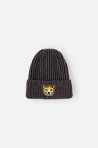 Однотонная розовая шапка с отворотом из полушерсти. Украшена нашивкой с изображением единорожки.