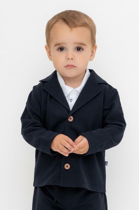 Пиджак для мальчика из высококачественного трикотажного полотна футер петля. Застёгивается на пуговицы. Изделие сохраняет цвет и форму после многократных стирок.