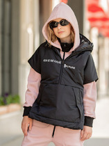 Стеганый жилет с капюшоном для девочки с утеплителем Fellex®: 120 г/м2. Выполнен из мембранной ткани с дополнительной тефлоновой обработкой. Данный вид обработки предохраняет изделие от загрязнения и лучше отводит влагу. Подклад из 100% полиэстра. У изделия предусмотрена защита подбородка. Капюшон утягивается при помощи эластичного шнура со стопперами. Накладные карманы с клапанами на кнопках. Во всех изделиях верхнего ассортимента для безопасности ребенка предусмотрены светоотражающие элементы.