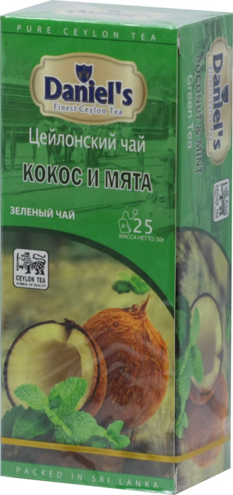 Daniel's. Coconut & Mint Green Tea 50 гр. карт.пачка, 25 пак.