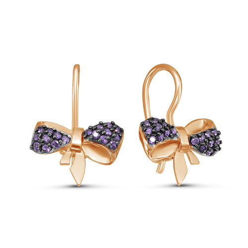 Совместные покупки Сургут Детские аксессуары Украшения, бижутерия — Детские позолоченные серьги с фианитами цвета аметист 077 - п