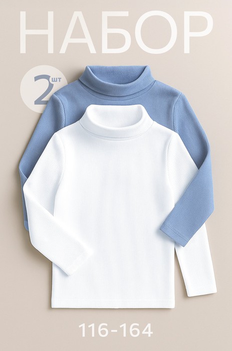 Набор водолазок в рубчик для детей и подростков выполнен из хлопкового трикотажа лапша. В комплекте 2 шт.
