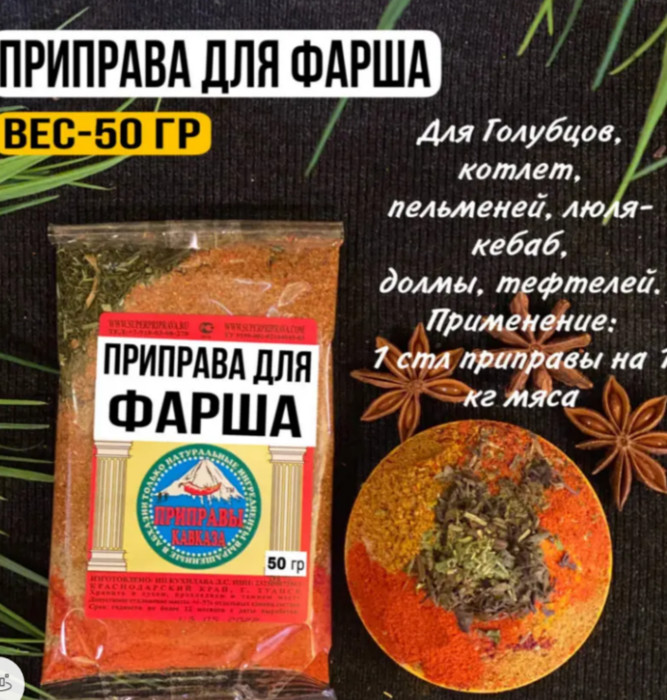 ПРИПРАВА ДЛЯ ФАРША — является одной из самых популярных приправ в нашей коллекции. Ведь сложно представить хозяйку, которая бы не готовила блюда из фарша. Это и всеми любимые котлеты, голубцы, чебуреки, самса, тефтели и множество других блюд.