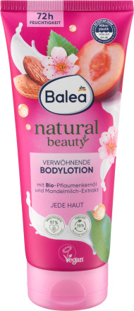 Лосьон для тела Balea Natural Beauty с молоком сливы и миндаля идеально подходит для нормальной и сухой кожи. Благодаря ценному составу с органическим маслом семян сливы и экстрактом миндального молока лосьон для тела обеспечивает бережный уход за кожей. Кожа становится ухоженной и становится эластичной и мягкой.