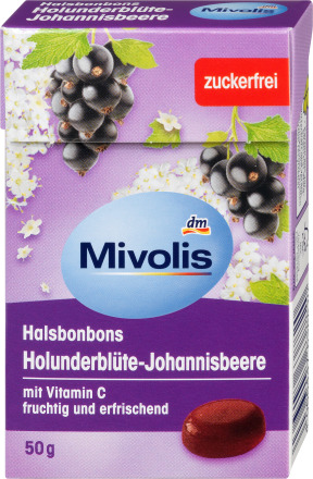 Конфеты Миволис без сахара со вкусом бузины и смородины с подсластителями и витамином С имеют особенно приятный вкус благодаря экстракту цветков бузины.