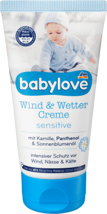Чувствительный крем Wind & Weather Cream от babylove интенсивно защищает чувствительную детскую кожу от ветра, влаги и холода. Питательная формула с экстрактом ромашки, пантенолом и подсолнечным маслом укрепляет кожный барьер (собственную защитную функцию кожи) и тем самым защищает кожу от пересыхания. Крем поддерживает естественный баланс кожи, делает ее мягкой и эластичной. Рецепт без микропластика и водорастворимых, чисто синтетических полимеров.