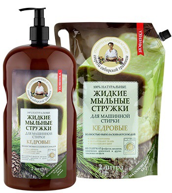Мыльные стружки изготовлены из свежесваренного мыла Агафьи на основе натуральных омыленных масел кедра, горчицы и ромашки с добавлением отваров сибирских трав. Благодаря чему жидкие мыльные стружки на 100% безопасны, экологичны и натуральны.
