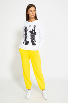 Джемпер-поло прямого кроя. Выполнен из трикотажа черного цвета. Воротник отложной. Застёжка пуговички на планке. Рукав втачной, короткий. Длина спинки 45 см. Длина рукава от линии втачивания 24 см