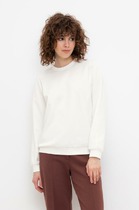 Джемпер женский облегающего силуэта, выполнен из кружевного полотна молочного цвета. Характеристика: облегающий силуэт, оавальный вырез, спереди и по спинке центральныйу шыв выполнен зборкой, пришиты плечики, рукав втачной, внутренний и внешний швы выполнены сборкой, без подклада. Длина рукава от края горловины 84см, длина изделия по центру спинки 58см.