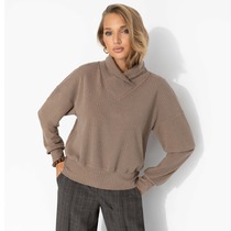 Вырез горловины и низ рукава, обработаны с помощью шва «Улитка». Рукав втачной со слегка спущенной проймой. Спинка изделия длиннее полочки и имеет форму полукруга по низу. Низ изделия обработан декоративной плоскошовной строчкой.