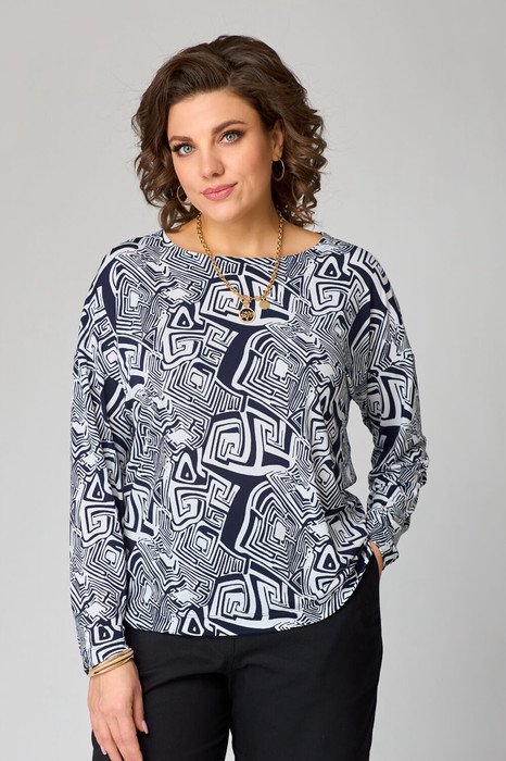 Совместные покупки Сургут Женская одежда Джемперы, свитеры, водолазки — Джемпер Bliss 8169 синий, белый (принт лабиринт)