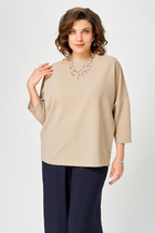 Джемпер из технологичного трикотажного полотна с эффектом peach. Прямого силуэта с втачным рукавом со вставкой из кружева и настроченными хлопковыми лампасами, переходящими на плечо и манжетой из отделочной ткани по низу рукава. Полочка с центральной застежкой на тесьму-молнию и карманом-листочкой и нашивкой с гравировкой "BUTER". По горловине и низу изделия притачная планка из отделочной ткани.