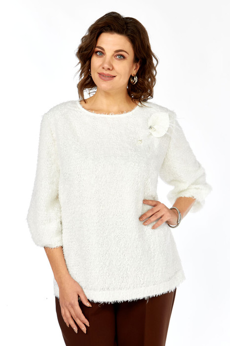 Праздничная элегантная блузка полуприлегающего силуэта, выглядит эффектно, прекрасно подойдет для  мероприятий. Горловина аккуратной округлой формы. Рукав втачной, свободный с фантазийным решение, длина 7/8. Декоративным элементом является съемная дизайнерская брошь. Средний шов спинки вверху переходит в застежку на 6 навесных петель, пуговиц.  В боковых швах предусмотрены разрезы.