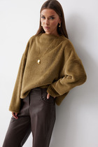 Джемпер прямого силуэта из трикотажного полотна. Перед с застежкой поло и нагрудными вытачками. По воротнику, низу изделия и низу рукава отстрочена декоративная строчка. Длина джемпера - 61 см, длина рукава - 61 см.
