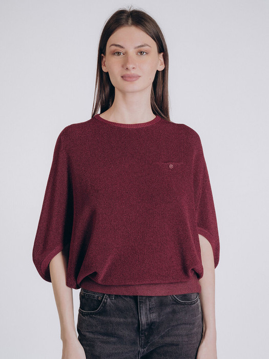 Глубокий бордовый оттенок и мерцающая фактура придают образу элегантность и современную выразительность, делая эту кофту стильным акцентом вашего гардероба.