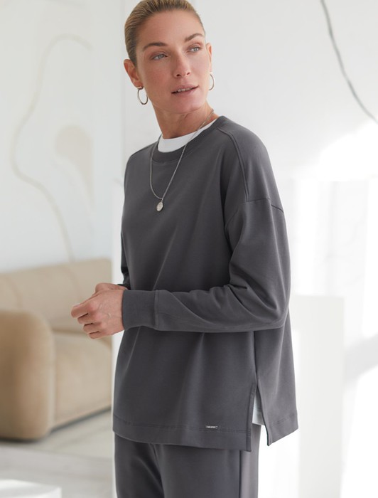 Состав: 95%Хлопок 5%ПУ Плотность: 240 Г/м2 Параметры модели на первом фото: Рост 170, бюст 89, талия 63, бедра 92Джемпер со спущенной линией плеча выполнен из премиального хлопка. Модель дополнена разрезами по бокам. Мягкий эластичный хлопковый трикотаж гарантирует исключительный комфорт и уют дома. Идеально сочетается в костюме с шортами D48.006, брюками D44.120 и леггинсами D44.131
