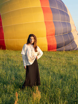Джемпер свободного объёма из стёганой ткани. Горловина на молнии с окантовкой из экокожи. Манжеты и низ джемпера на резинке. По бокам расположены карманы.