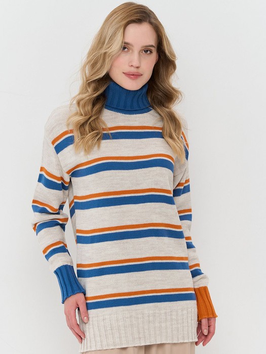 Джемпер NewVay 7242-40301 св.бежевый/деним/абрикосовый пунш