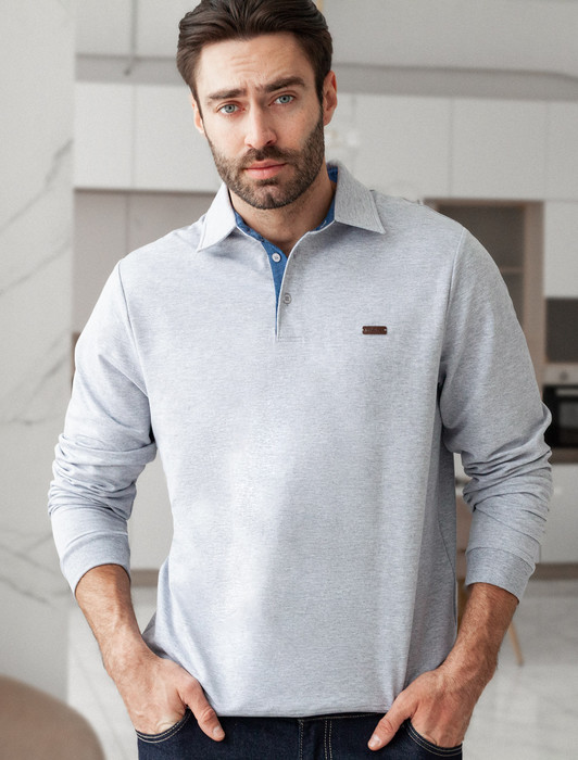 Совместные покупки Сургут Мужская одежда Футболки — Джемпер-поло из эластичного футера с застежкой на пуговицы