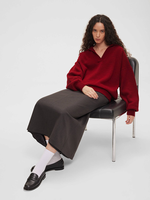 Совместные покупки Сургут Женская одежда Джемперы, свитеры, водолазки — Джемпер-поло свободного кроя, бордовый