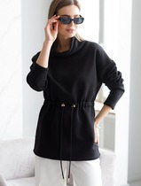 Совместные покупки Сургут Женская одежда Футболки — Джемпер с объемным воротом и шнуром на талии из футера-трехнитки