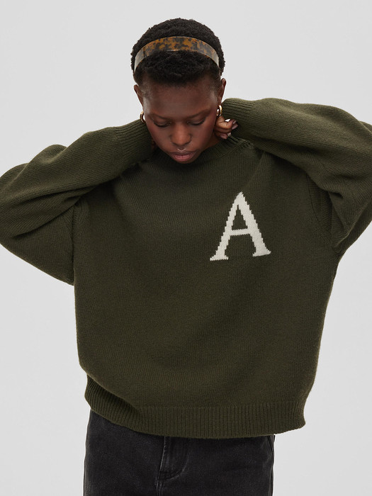 Джемпер выполнен в колледж-стиле и украшен вывязанной буквой "А" с использованием техники "интарсия". Его универсальная модель включает спущенную линию плеча, круглый вырез горловины и резинки на рукавах и по низу, что обеспечивает комфортную посадку для любой фигуры.