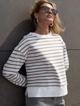 Vilatte Джемпер из тонкого премиального футера с эластаном D49.055 белый-кофе по