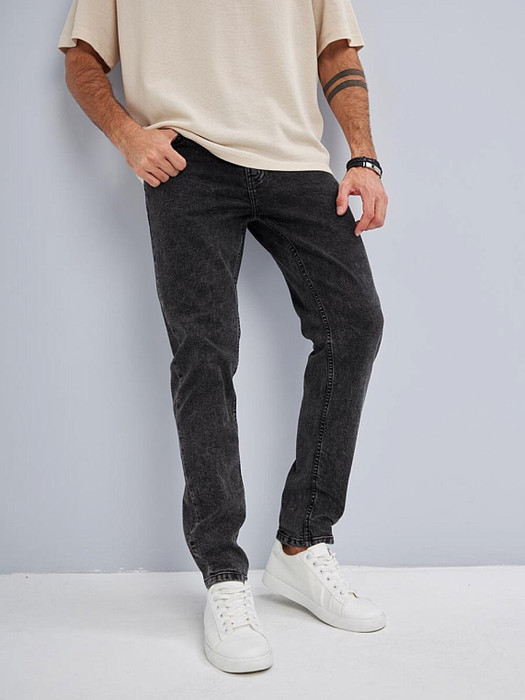 Мужские классические джинсы с пятью карманами. Посадка Slim Fit (облегающие по бедрам) предлагает зауженный крой, который подчеркивает силуэт и не стесняет движения. Средняя высота талии, застежка на молнии, зауженные к низу. Выполнены из слабоэластичной ткани denim comfort stretch, цвет ткани Black/Black (лицевая и изнаночная стороны ткани черные). Специальная темная стирка "towel wash", мраморный эффект. Выберите мужские классические джинсы Slim Fit и создайте стильный и уверенный образ, который подчеркнет вашу индивидуальность!