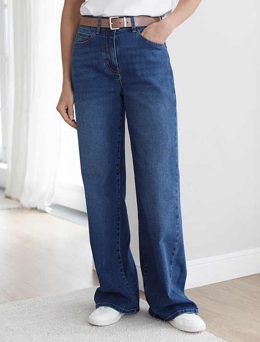 Совместные покупки Сургут Женская одежда Футболки — Джинсы прямые с декоративной стиркой из эластичного плотного денима