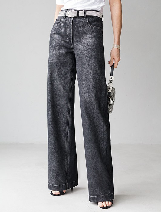Джинсы трубы из эластичного денима с металлизированным покрытием