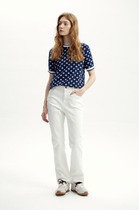 Состав: 70%Хлопок 28%ПЭ 2%ПУ Плотность: 11 OZ Параметры модели на первом фото: Рост 172, бюст 88, талия 64, бедра 88 Размер товара на первом фото: 42Джинсы-трубы выполнены из эластичного денима. Сверху изделия нанесено стойкое, но при этом мягкое металлизированное покрытие с декоративными потёртостями. Неравномерность серебряного покрытия придает особый шарм каждому изделию. За счет высокой посадки на талии и свободного силуэта, модель вытягивает силуэт, визуально стройнит и подходит для любой фигуры. Хорошо подойдут для праздничного выхода и внесут яркую изюминку в повседневный образ.
