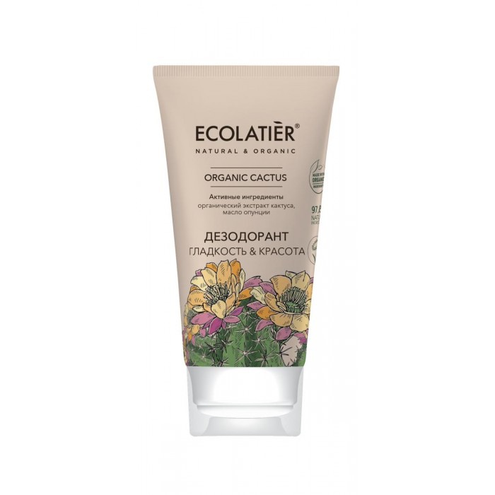 Ecolatier Дезодорант Гладкость & Красота Organic Cactus на основе натуральных компонентов особенно бережно ухаживает за кожей, защищает от неприятного запаха, дарит легкий аромат, обеспечивает свежесть и комфорт. Не оставляет следов на одежде. Натуральное и безопасное средство. Содержит не менее 97% ингредиентов растительного происхождения.