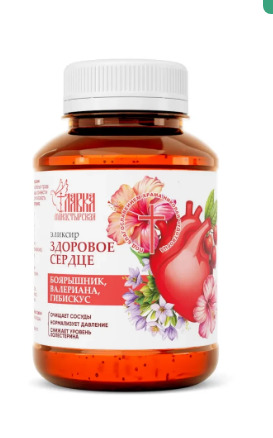 Эликсир изготовлен по старинным монастырским. Сбалансированное сочетание целебных трав помогает улучшить работу сердечной мышцы, привести её в тонус, снять боль, очистить сосуды, нормализовать кровяное давление, снизить уровень холестерина.