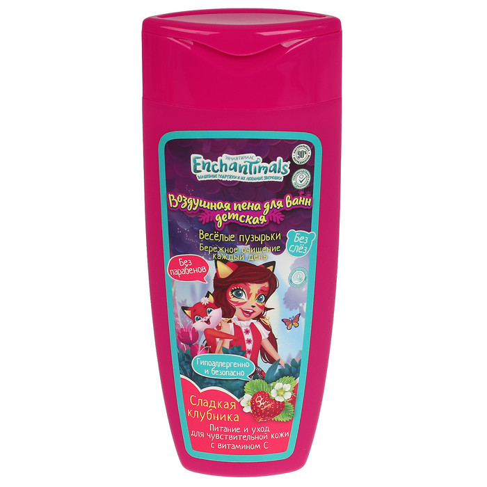 Детская воздушная пена для ванн «Enchantimals» с ароматом сладкой клубники непременно понравится вашему ребёнку и сделает принятие гигиенических процедур приятным занятием: