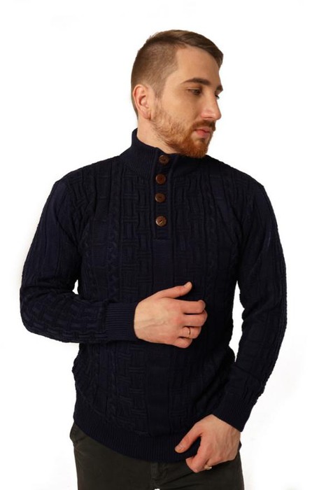 Совместные покупки Сургут Мужская одежда Кофты, кардиганы — ESENIA Джемпер мужской полушерстяной с короткой застежкой на пуговицах Тёмно-син