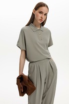 Совместные покупки Сургут Женская одежда Поло — ESENIA Джемпер поло ажурный из вискозы с коротким рукавом - Бежевый