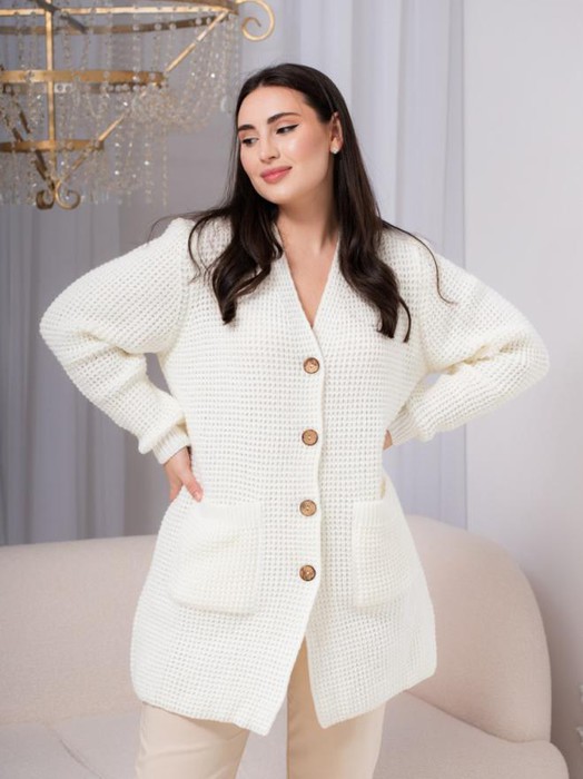 Совместные покупки Сургут Женская одежда Кофты, кардиганы — ESENIA Кардиган женский полушерстяной - Молоко