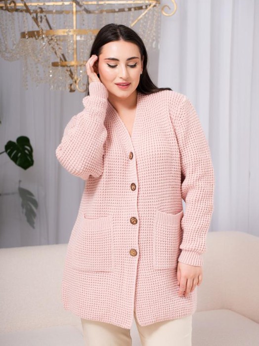 Совместные покупки Сургут Женская одежда Кофты, кардиганы — ESENIA Кардиган женский полушерстяной - Пудрово-розовый