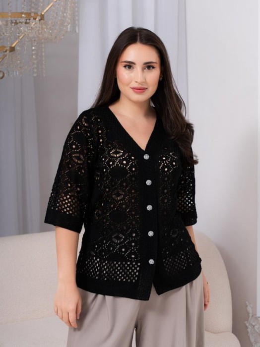 Совместные покупки Сургут Женская одежда Кофты, кардиганы — ESENIA Кофта женская летняя Ажур - Чёрный