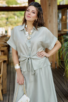 27.03 Vilatte Блузка с короткими рукавами из плотного струящегося сатина D29.28