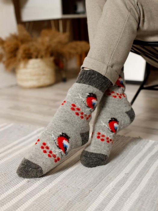 ESENIA Носки шерстяные круговой вязки с рисунком Птички