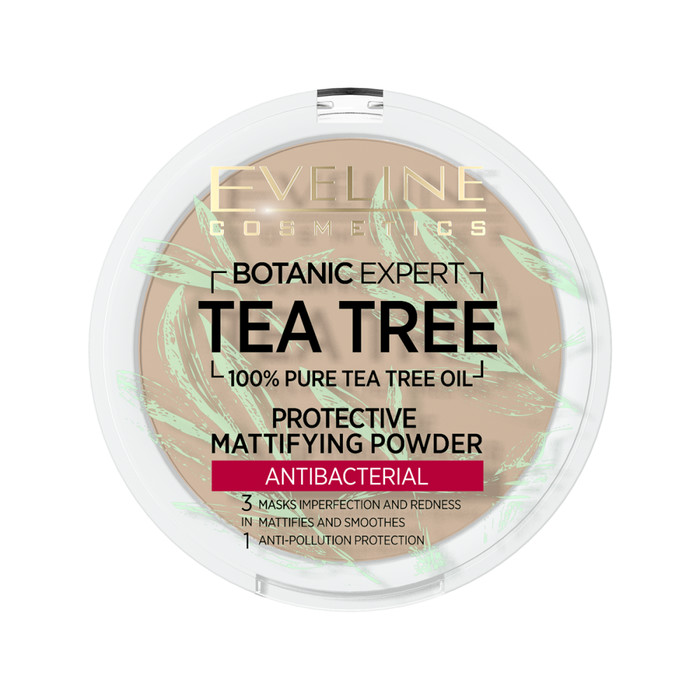 Содержащееся в пудре 100% натуральное масло чайного дерева обладает антисептическими и себорегулирующими свойствами, очищает поры и придает коже здоровый бодрый вид.