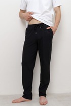 Брюки с отрезным поясом из кашкорсе, двумя карманами в боковых швах и одним накладным карманом сзади.