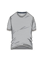 Фуфайка с коротким рукавом среднего объема, с оригинальным принтом, круглым вырезом горловины, которая оформлена обтачкой из рибаны.