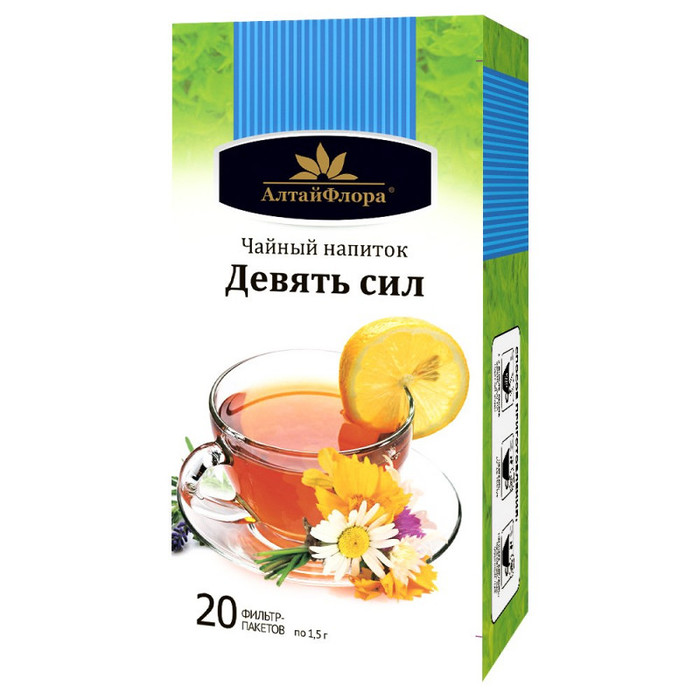 Одно из самых древних известных растений, которое на Алтае применяли в целебных отварах – девясил. Корни этого представителя местной флоры обладают удивительной способностью к восстановлению сил, общеукрепляющей эффективности и стимуляции иммунитета человека. Чай Девять сил создан на основе девясила с плодами и листьями облепихи. Помимо отменного вкуса данный напиток справляется с воспалительными процессами, угнетает рост патогенных колоний микробов и борется с простудой.