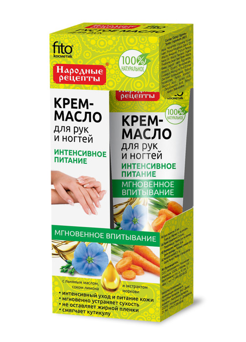 Крем-масло для рук и ногтей Интенсивное питание с льняным маслом, соком лимона и экстрактом моркови серии Народные Рецепты