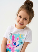 Футболка для девочки, модной объемно-силуэтной формы, свободная в верхней части. Модель с наклонными отстроченными швами по переду и спинке, фигурной линией низа (с небольшим удлинением сзади). Рукава короткие цельнокроенные.
