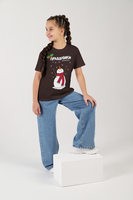 Совместные покупки Сургут Детская одежда Футболки, майки — Фуфайка (футболка) для девочки Карнавал-1 ФД-019 ШОКОЛАДНЫЙ